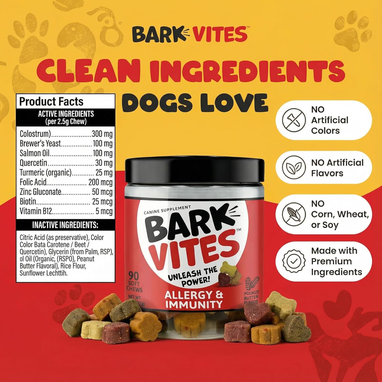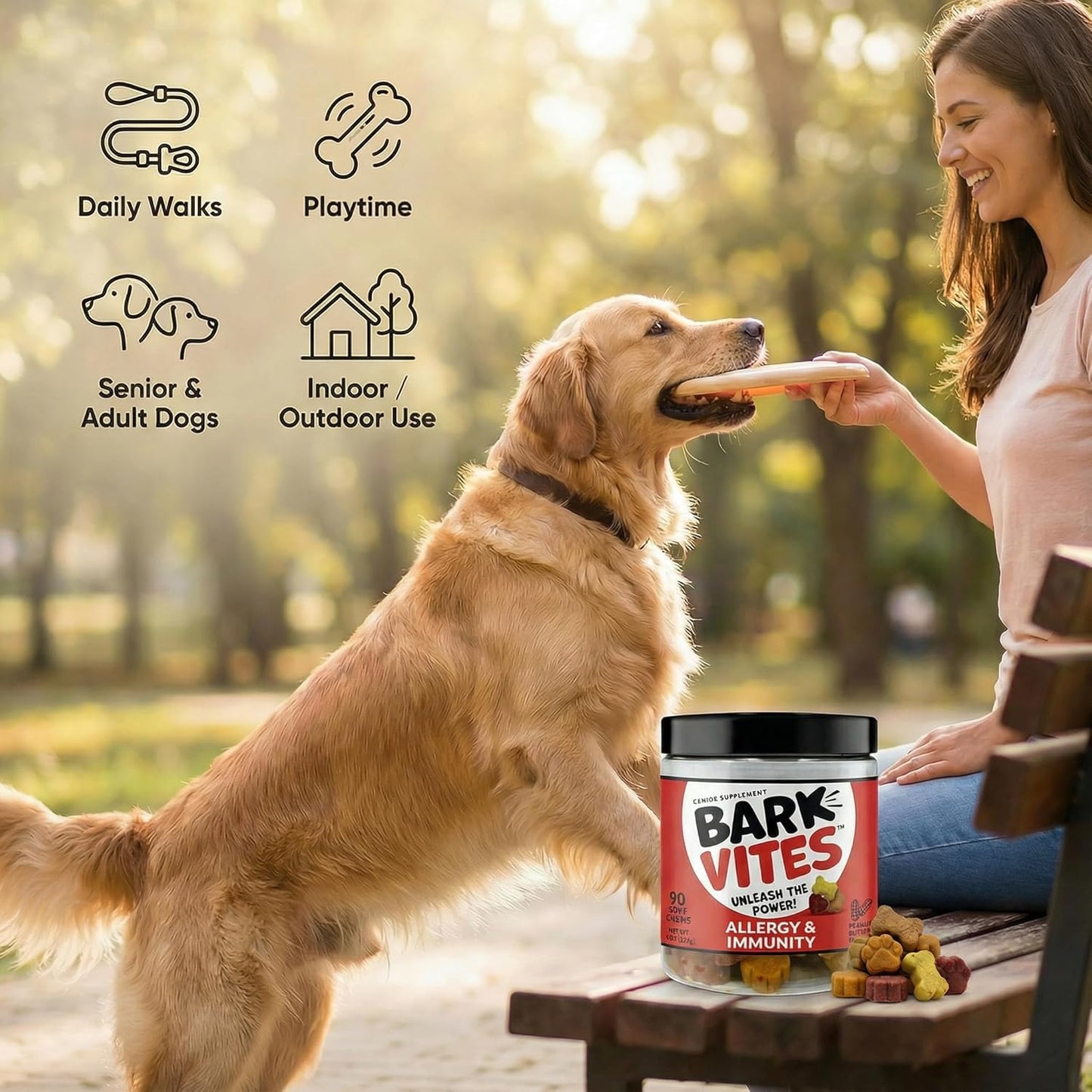 Our BarkVites chews are proudly made in the USA in a GMP-certified facility, with third-party batch testing for purity and potency. We use premium ingredients, including domestic sourced components, to ensure the highest quality for your bestie.